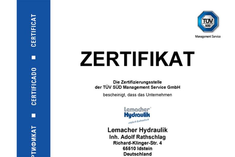 für den Geltungsbereich: Entwicklung, Fertigung, Vertrieb und Service von hydraulischen Antriebssystemen und Hydraulikkomponenten